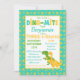 A cute Dinosaur theme invitation for a baby or young boy's birthday party featuring a cartoon green T-Rex dinosaur, tyrannosaurus and a yellow Brontosaurus set on a blue and yellow dinosaur background with the word DINO-MITE in a fun colourful party font. A fun lovely play on words to advise of the birthday boys age THREE-a-Saurus - The age can be amended to personalise the invitation along with the child's name. Then customise with the party details on contact information. Have a wonderful party.