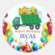 Cute Dinosaur garbage truck balloon birthday boy Classic Round Sticker