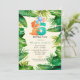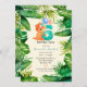 Cute Dinosaur Green Leaves 6th Birthday Party Invitation