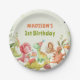 Cute Dinosaur Greenery Birthday Party Paper Plates