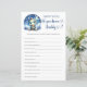 Fairy tale design for Boy Baby Shower game features Watercolor hand painted illustration of a Cute watercolor dinosaur hugging teddy bear in the starry night. Hand drawn typography.