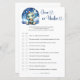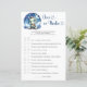 Whimsical design for Boy Baby Shower game features Watercolor hand painted illustration of a Cute watercolor dinosaur hugging teddy bear in the starry night. Hand drawn typography.