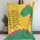 Make gift giving very personal and intimate with this beautiful blanket. Design features a green dinosaur with yellow background illustration, your personal message with custom names.