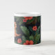 GREAT MUG FOR KIDS FEATURING A CUTE DINOSAUR STROLLING THROUGH FOREST SURROUNDED BY LEAVES AND HIBISCUS FLOWERS.