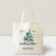 Cute Dinosaur Nautical Captain Personalised Blue Tote Bag