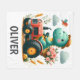 This personalised adorable and whimsical fleece blanket features a charming farmer dinosaur joyfully driving a red tractor carrying beautiful flowers. With its playful expression, this delightful creation adds a touch of enchantment to any space.