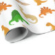A cute wrapping paper for kids who love dinosaurs, this design features an array of dinosaurs in shades of brown and green.