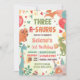 Cute Dinosaur Three-A-Saurus 3rd Birthday Party Invitation