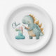 Cute dinosaur with a brush 1st Birthday Paper Plate