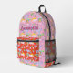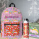 This customisable illustration showcases charming and whimsical dinosaurs, rainbows, volcanoes, and butterflies designed to inspire the imagination of young girls. The vibrant background colours, featuring shades of red and pink, can be adjusted to fit the personal preferences of your little girl. maybe she likes pink and purple or blue and white, you can create a truly unique design for each girl. This whimsical artwork is suitable for various occasions, making it an ideal gift for back-to-school, summer camp, or visits to grandma's house. A backpack adorned with her name or a special phrase will surely bring joy and pride to any little girl.