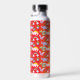 This customisable water bottle features a charming and whimsical illustration of dinosaurs, rainbows, volcanoes, and butterflies, designed to inspire the imagination of young girls. The vibrant background colours, which include shades of red and pink, can be adjusted to match your little girl's personal preferences—whether she prefers pink and purple or blue and white. This delightful artwork is suitable for various occasions, making it an ideal gift for back to school, summer camp, or simply to encourage hydration on the go. A water bottle personalised with her name will surely bring joy and pride to any young girl, ensuring she stands out at school with a bottle that is uniquely hers.