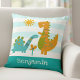 Cute Dinosaurs Baby Boy Turquoise Stripes Kawaii Cushion