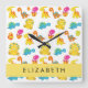 Cute Dinosaurs, Pattern Of Dinosaurs, Your Name Square Wall Clock