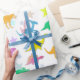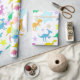 Cute Dinosaurs Wrapping Paper. Cute colour dinos pattern with happy smiling T-Rex, Stegosaurus, Parasaurolophus and Diplodocus with colour stars pattern print dinosaur wrapping paper for your birthday gifts and Christmas presents. This adorable cartoon dinosaur gift paper is fully customisable, personalise with your name, add your texts and images!
