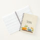 Spiral notebook with a cute design featuring 4 dinosaurs. 2 are flying and 2 are on the ground. Created with watercolors.