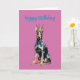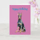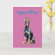 This adorable Doberman dog birthday card includes a cute Doberman dog in a birthday hat graphic as well as a custom saying on the inside. This design also includes a magenta background. Enjoy this Doberman puppy birthday card!