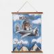 Cute Dog Aeroplane,Clouds Mountains,Custom Aviator Tapestry in a watercolor design.