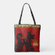 In a square are 2 dogs: one (black paper-cut Chinese style) seems to hold a golden paper-cut shape (inside is the second dog with the Chinese symbol). Behind them there is a red background formed by decorative and ornamented letters with the words: "Year of the Dog". Design on all-over tote bag. Matching greeting card, craft products, home products and more... Perfect for Chinese New Year of the Dog or birthday (people born in the dog year). ----- "The dog (狗) is one of the 12 years of the cycle of animals that appear in the Chinese zodiac related to the Chinese calendar.The year of the dog is associated with the symbol of the terrestrial branch 戌. To the real animal, while 戌 refers to the animal of the zodiac ... People born in these date ranges can be said to have been born in the "Year of the Dog", while wearing The following elementary sign: