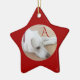 Cute Dog Custom Single Initial Red Star Ceramic Ornament