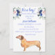 Cute Dog Dachshund Floral Blue Weiner Baby Boy Invitation