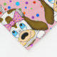 A cute and happy dog makes up this fun fleece blanket. Customisable so you can add your own text and change the background colour. Makes a great gift!