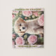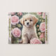 Cute jigsaw puzzle featuring an adorable watercolor dog Golden Retriever puppy in the rose garden. Makes a cute personalised stocking stuffer or birthday gift for kids and all the dog lovers. Comes with a cardboard carry-case with a puzzle image printed on the lid! Easily personalise the text or leave it blank. - Kate Eden Art