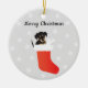 Cute Dog In A Stocking Snowflakes Ceramic Ornament