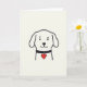 This cute card shows a simple illustration of a sweet dog centered on an off-white background. The dog is drawn with black outlines, with floppy ears and a rounded upper body that feels calm and friendly. Its face has two small dot eyes, light eyebrow curves, a tiny oval nose, and a small smile that looks content. Around its neck is a black collar with a bright cherry-red heart-shaped tag that stands out right away ❤️. There isn’t any other scenery or extra objects, which keeps the focus on the dog’s loyal, loving look. There’s no text printed on the front of the card, so the image does all the talking 💌