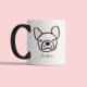 Custom pet portrait illustration Frenchie French Bulldog mug ready for you to add name. Great gift for Dog Mum and any pet parent on Mother's or Father's Day or Valentine's Day! Feel free to change the ear colour or background colour to any other under "personalise this design" and go to "edit using design tool". Other breeds available in collection. Choose from a variety of interior mug colours.