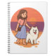 Cute Dog Mom Walking Fluffy Pup on Sunset Beach Notebook