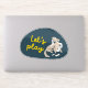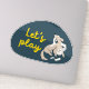 Cute dog, navy and yellow "let's play!" sticker
