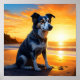 Cute Dog on Beach at Sunset Poster