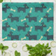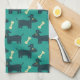 Cute Dog Pattern with Bone on Green Background Tea Towel