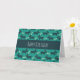 A birthday card designed with a repeating pattern featuring a cute smiling doggy with floppy ears and a dog bone. Green background. Message inside which can be customised.