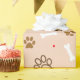 Sweet and cute design featuring dark brown dog paws, white bones, red and dark brown polka dots. Light brawn background. Perfect for the dog lover.