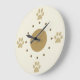 Cute dog paws wall clock with beige and cream colours with little dog paw prints on the clock face in this colourful wall decor pet animal clock design for your kitchen, bathroom, or any room in your house you want to add some colour and character.