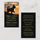 A cute and memorable business card for a pet and house sitting business. A cute dog silhouetted on the front and a list of services on the back.