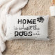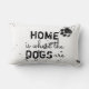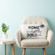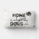 This cute dog quote pillow is black and white and has text home is where the dog are with a paw print paint splatter design for home decor for dog lover everywhere. Original art copyright Ann Powell all rights reserved.