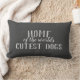 This cute dog quote pillow has text home of the world's cutest dogs in a lark grey design for home decor for dog lovers everywhere.