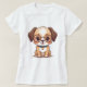 A cute and cuddly cartoon chibi image of a puppy wearing glasses