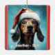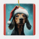 Cute Dog Wearing Santa Hat Dachshund Christmas Ceramic Ornament