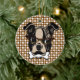 Cute Dog with Moustache, Eyeglasses & Bone in Ceramic Tree Decoration