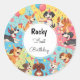 Celebrate your furry friend's special day with this fun and festive sticker! It features a cheerful cartoon design of playful dogs celebrating with balloons, party hats, and confetti. This sticker is a perfect party favour, gift bag addition, or decoration for any dog lover's birthday celebration.