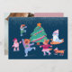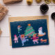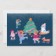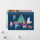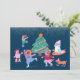 Cute Dogs Ice Skating Dark Blue Flat Holiday Card