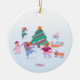Cute Dogs Ice Skating soft blue Christmas Photo Ceramic Ornament