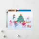 Cute Dogs Ice Skating soft blue Flat Holiday Card