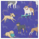Stylish Cute Different Types Of Dogs Pattern Design greenish blue Background Textile Fabric.