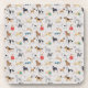 Thiny Stylish Cute Different Types Of Dogs Pattern Design White Background with a faded reflection effect COASTER. #coaster #dogcoaster