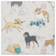 Stylish Cute Different Types Of Dogs Pattern Design White Background Textile Fabric.