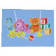 These adorable and colourful plush dolls are ready to play! There's a blue horse, purple dog, yellow cat, teddy bear, rubber ducky, bouncy ball, and ABC cubes. This design can be customised or personalised by adding your own text and images.